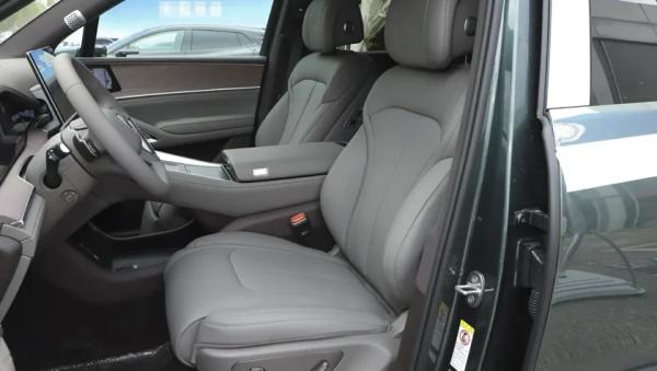Архитектура передней панели типична для современных китайских автомобилей, но не обошлось без оригинальных решений. По центру установлен «парящий» сенсорный планшет мультимедийной системы, а для водителя и переднего пассажира предусмотрено еще по одному встроенному дисплею. На центральном тоннеле две площадки беспроводной зарядки для смартфона.