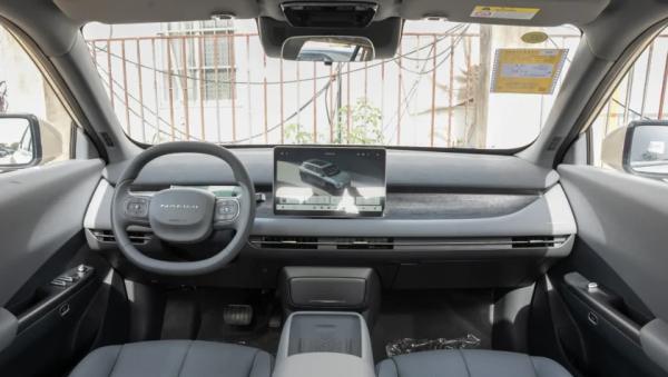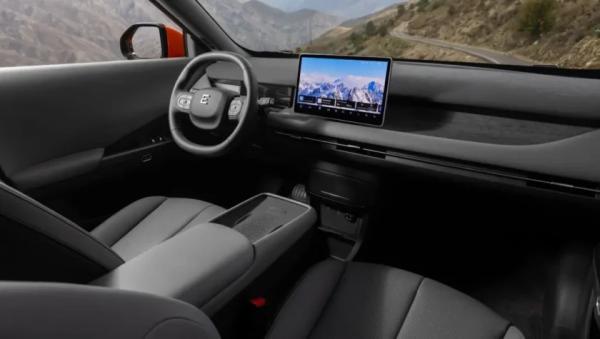 В салоне полный минимализм с практически полным отсутствием физических кнопок, а основным органом управления является установленный по центру сенсорный экран мультимедийной системы (12,8-дюйма). Перед водителем двухспицевый руль, за которым компактный дисплей приборной панели с виртуальной графикой. Между передними креслами «навесной» подлокотник с беспроводной зарядкой для смартфона.