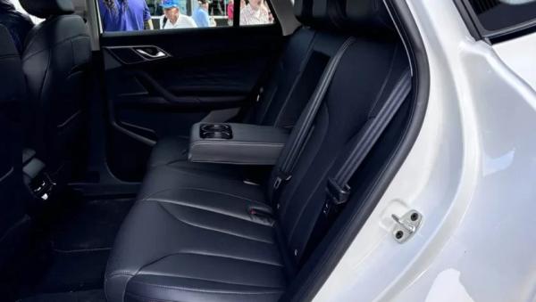 В пятиместном салоне основное внимание привлекает передняя панель с двумя экранами — приборным и мультимедийным, объединёнными в единую горизонтальную поверхность без козырька. На центральном тоннеле расположены аналоговый селектор трансмиссии и площадка для беспроводной зарядки устройств.