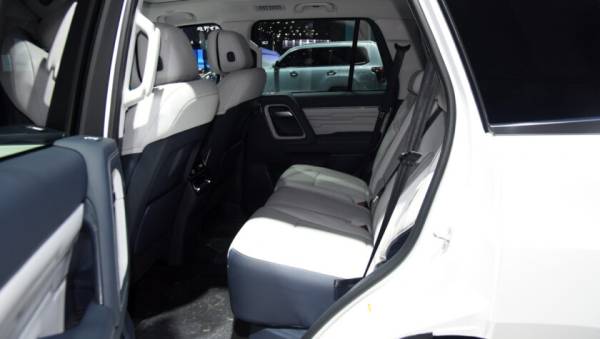 Но это по-прежнему суровый вездеход с «квадратной» формой кузова. Из особенностей можно выделить решетку радиатора разделенную на пять секций, в которую по бокам аккуратно интегрированы прямоугольной формы фары. На корме багажная дверь с полноценной «запаской» разделена на две части: снизу распашная дверца, а сверху подъемное стекло.